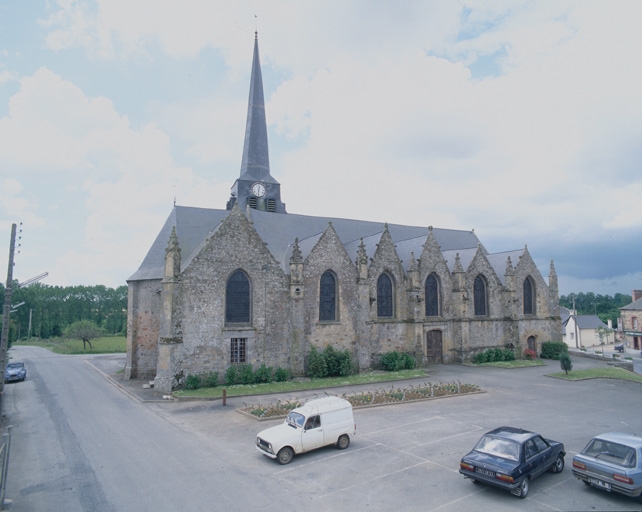 L´église de Rannée dédiée à Saint Crépin et Saint Crépinien a été reconstruite entre 1168 et 1178 suite à un incendie. De cette période, elle conserve encore de beaux vestiges, la façade occidentale, la base de la tour du clocher et le choeur terminé par une abside. La façade occidentale très sobre est épaulée par quatre contreforts. Ceux du centre encadrent le portail d´entrée et la fenêtre haute. De proportion modeste, le portail présente une mise en oeuvre particulièrement soignée, les claveaux qui forment l´arc brisé sont protégés par une archivolte à billettes. La façade nord remploie également des pierres taillées dont les décors gravés en dents de scie témoignent au moins de cette période. Le choeur conserve également de la période romane son arc triomphal, soutenu par des colonnes engagées à chapiteaux ouvragés. Le reste de l´édifice a été reconstruit aux 16e et 17e siècles. La façade nord est particulièrement intéressante et présente une succession de pignons de gabarits différents dont les gâbles décorés renvoient à l´ art gothique finissant. Le portail nord dans le style de la renaissance avec pilastres et chapiteaux composites est en pierre de taille de calcaire. Les deux contreforts qui l´encadrent sont munis de bas reliefs qui représentent à gauche un donateur agenouillé et à droite saint Crépin ou saint Crépinien. Les ducs de Brissac étaient seigneurs de la Guerche de 1562 à 1673 et la reconstruction de l´édifice est vraisemblablement due au largesse de cette puissante famille. L´abbé Guillotin de Corson mentionne également dans le pouillé historique de Rennes, la présence en 1685 des armoiries des ducs de Brissac, dans la maîtresse vitre, sur un banc seigneurial placé dans le chanceau, sur deux lisières faisant le tour de l´édifice et sur un poteau placé à l´entrée du cimetière. La date de 1658 est portée sur la clef centrale d'une porte extérieure sud. La date de 1807 est portée sur un contrefort nord.