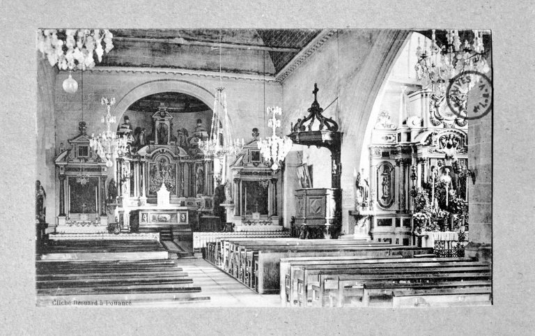 Vue intérieure de l'église. Carte postale, Pouancé : cliché Drouard, [s.d.]. (A.D. Ille-et-Vilaine : 6 Fi).