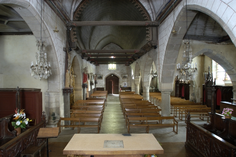 Eglise composé de deux vaisseaux recouverts d´un lambris de couvrement. Le chevet plat est éclairé par une grande verrière. Clocher latéral au sud accosté d´une chapelle. Sacristie contre le mur sud du choeur.