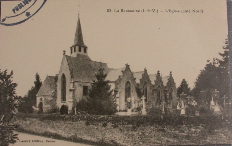 La Baussaine (I.-et-V.). L'église (côté Nord). Carte postale, A. Lamiré, Editeur, Rennes, [s. d.] (A. D. Ille-et-Vilaine : 6 Fi).