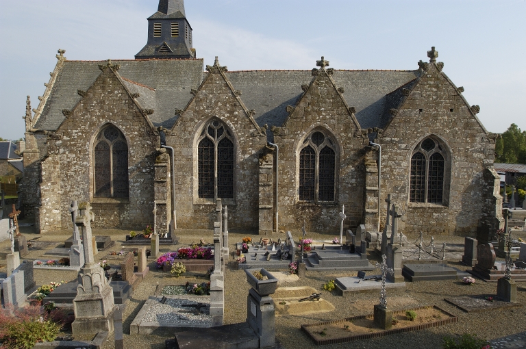 Protégée par une inscription au titre des Monuments historiques depuis 1926, l´église paroissiale Saint-Léon fait partie des belles églises rurales de style flamboyant du département d´Ille-et-Vilaine. Si sa façade occidentale et son chevet sont dans le style de la deuxième moitié du 15e siècle, plusieurs dates conservées dans l´édifice témoignent d´une reconstruction globale au 16e siècle. La richesse du décor sculpté et du mobilier attestent de l´aisance de la fabrique enrichie par le commerce des toiles. Une marque de marchand encadrée de la date de 1527 est encore visible sur une sablière de la nef. Plusieurs autres dates et inscriptions sont portées sur l´édifice et rendent compte de l´évolution du chantier. La dernière chapelle du bas côté nord fut levée le 16e jour de juillet 1555. La construction de la tour et du clocher nous sont également connue par une inscription et une date relevée par le chanoine Guillotin-de-Corson : G.TOUCHET J. BRIDEL TRESORIERS 1575. Le linteau de la chapelle sud contient également une autre inscription datée : ARTUR JULIEN VETIER DENOUAL TRESORIERS 1675. En 1746, la chapelle sud sous la travée sous clocher est dédiée à la Vierge. La sacristie sud est quant à elle construite dans la première moitié du 19e siècle, vers 1834-1836.