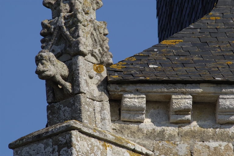 Sujet : crochets, support : pignons ; sujet : animaux fantastiques, supports : pignons, charpente.
