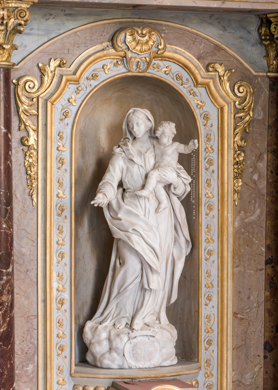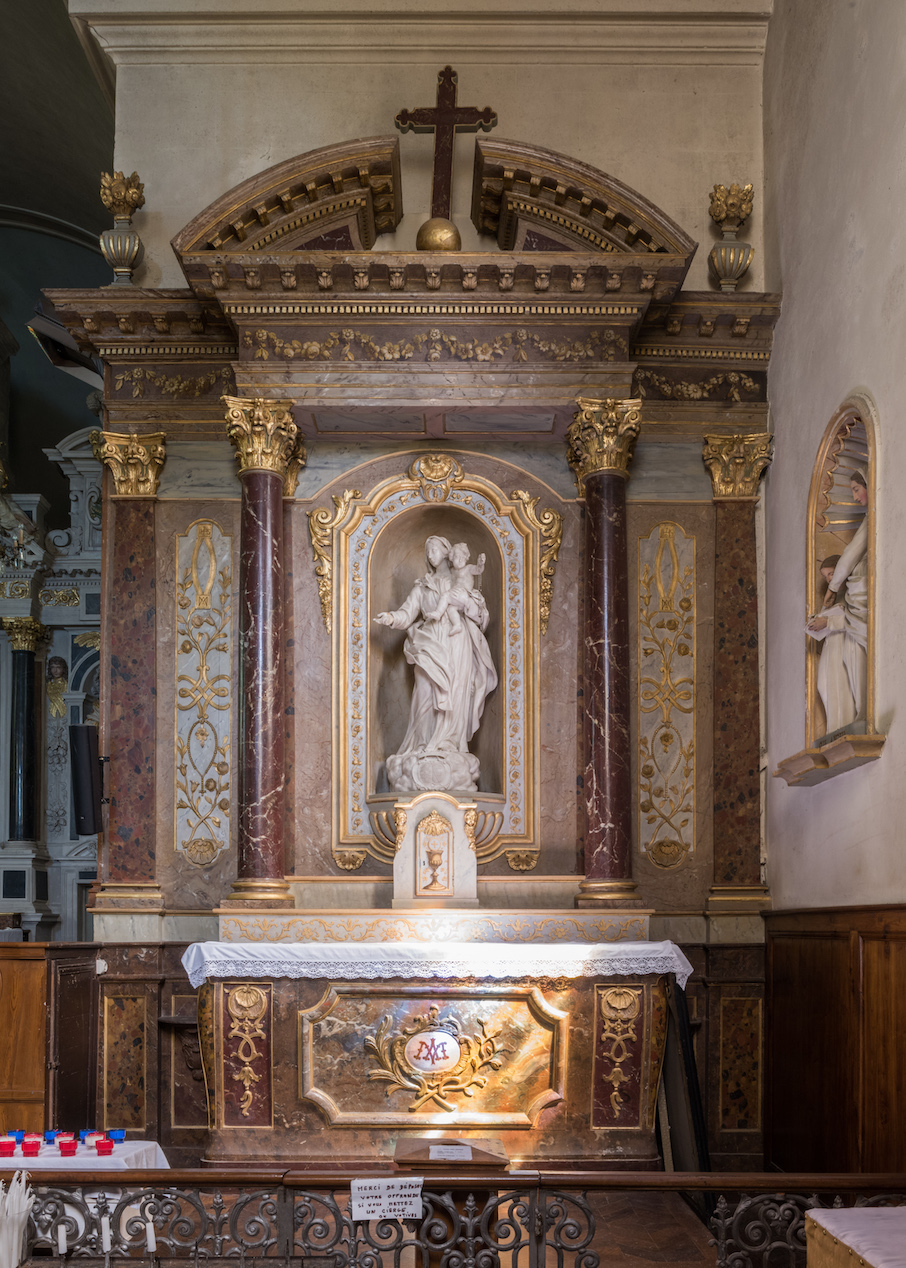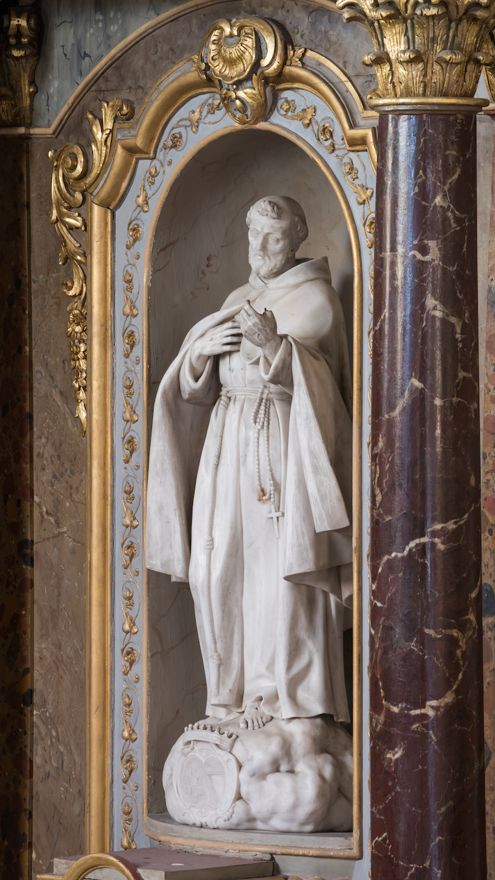 En 1774, le seigneur de Bonaban et négociant Guillaume Le Fer de la Saudre (1707-1763) et son épouse Hélène Le Grand de Vergoncée (1728-?), enrichis grâce à leur comptoir de Cadix, offrent deux statues de marbre blanc pour les autels latéraux, sur les socles desquelles ils font apposer leurs armes en alliance. La Vierge à l'Enfant et le saint François d'Assise ainsi commandés sont dus au ciseau du sculpteur gênois Francesco Maria Schiaffino qui avait déjà oeuvré trente ans plus tôt pour les Bénédictins de Saint-Malo.