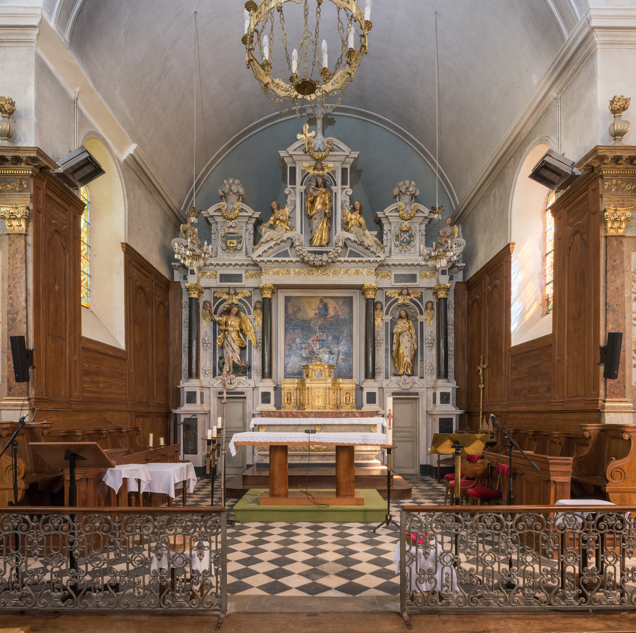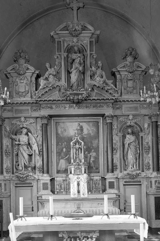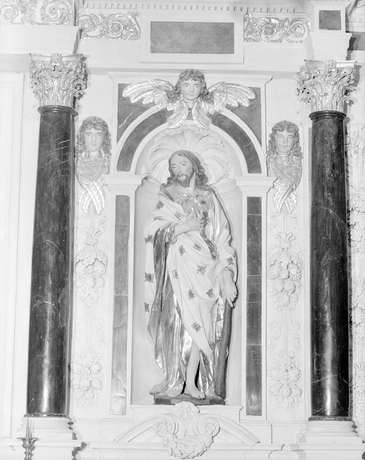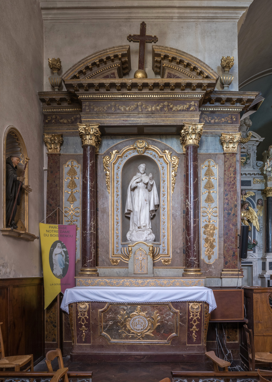 En 1774, le seigneur de Bonaban et négociant Guillaume Le Fer de la Saudre (1707-1763) et son épouse Hélène Le Grand de Vergoncée (1728-?), enrichis grâce à leur comptoir de Cadix, offrent deux statues de marbre blanc pour les autels latéraux, sur les socles desquelles ils font apposer leurs armes en alliance. La Vierge à l'Enfant et le saint François d'Assise ainsi commandés sont dus au ciseau du sculpteur gênois Francesco Maria Schiaffino qui avait déjà oeuvré trente ans plus tôt pour les Bénédictins de Saint-Malo.