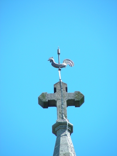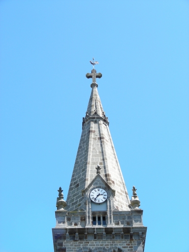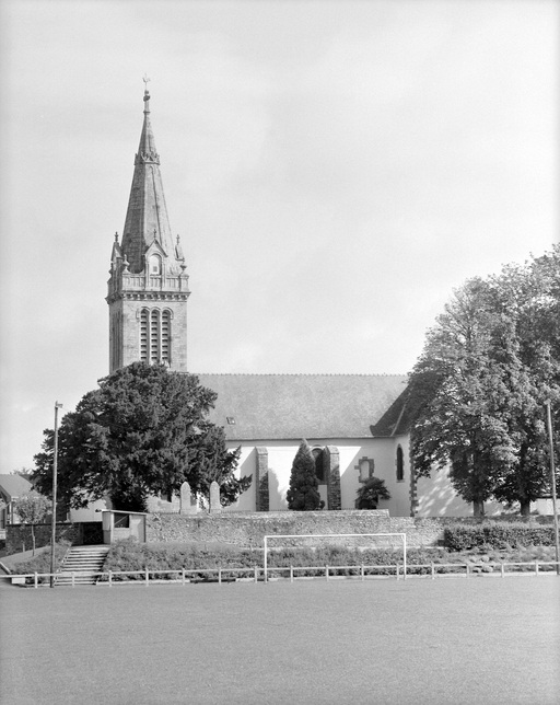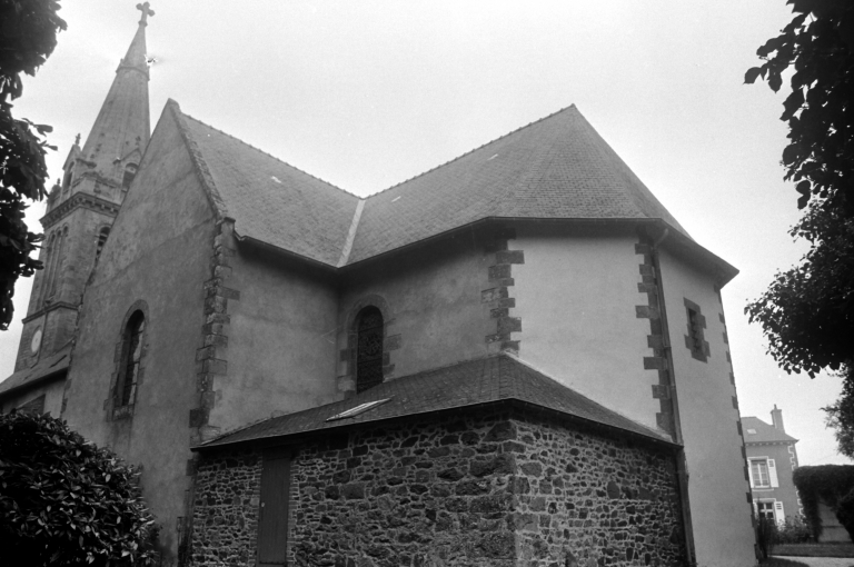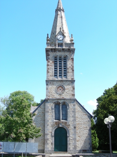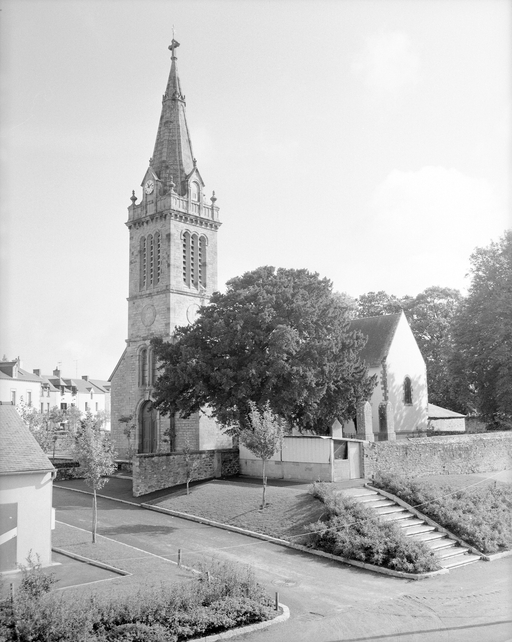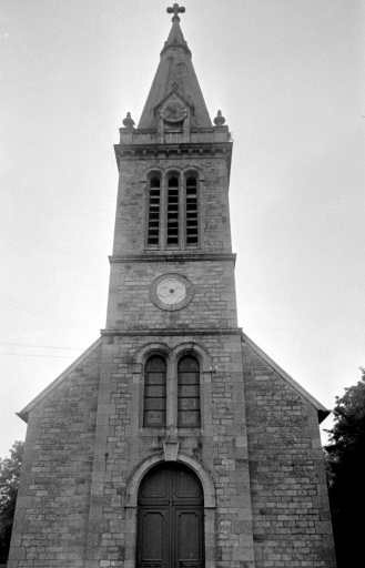 Le clocher, en haut de la nef, ruiné, est reconstruit au bas de la nef sur les plans des architectes Frangeul père et fils, projet soumis au conseil local des bâtiments civils en 1868 : construction du massif occidental et de la tour. Cette dernière a été reprise dès 1875 par l'entrepreneur Lebreton, puis de nouveau en 1925.locher, en haut de la nef, ruiné et reconstruit au bas de la nef sur les plans des architectes Frangeul père et fils. Projet soumis au conseil local des bâtiments civils en 1868 : construction du massif occidental et de la tour. Cette dernière a été reprise dès 1875 par l'entrepreneur Lebreton puis de nouveau en 1925.