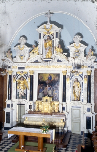 En 1666, le même Thomas Porée commande l'exceptionnel retable du maître-autel. Il s'adjoint pour cela les services de l'architecte François II Houdault, du sculpteur Pierre Biardeau, qui appose sa signature au sommet du retable, et d'un autre sculpteur, François Delabarre, qui réalise les statues en terre cuite. L'ensemble reprend le modèle lavallois: une élévation à trois niveaux, avec trois corps rythmés par de fausses lucarnes, des niches réservées à la statuaire, des frontons très présents, d'importantes moulures, l'usage d'ordres savants, des matériaux d'importation aussi précieux que possible, et enfin un grand tableau au centre. C'est une Assomption qui occupe cette place. Le tableau s'inspire d'une oeuvre de Philippe de Champaigne réalisée en 1639 et aujourd'hui conservée au musée des Beaux-Arts de Grenoble. À la Gouesnière, sa composition est inversée, parce que probablement réalisée d'après une gravure. On y voit François de Villemontée, évêque de Saint-Malo de 1657 à 1670, à genoux, en prière, seul visage tourné vers l'assemblée. Son portrait ici associé à l'Assomption pourrait également s'inspirer d'un portrait du même sujet par Philippe de Champaigne et connu par la gravure, selon Maud Hamoury. Le retable porte les armoiries de cet évêque et celles de François Pépin du Bignon (1620-1679), trésorier général de France, acheteur en 1664 de la seigneurie de la Gouesnière au commanditaire du retable Thomas Porée.