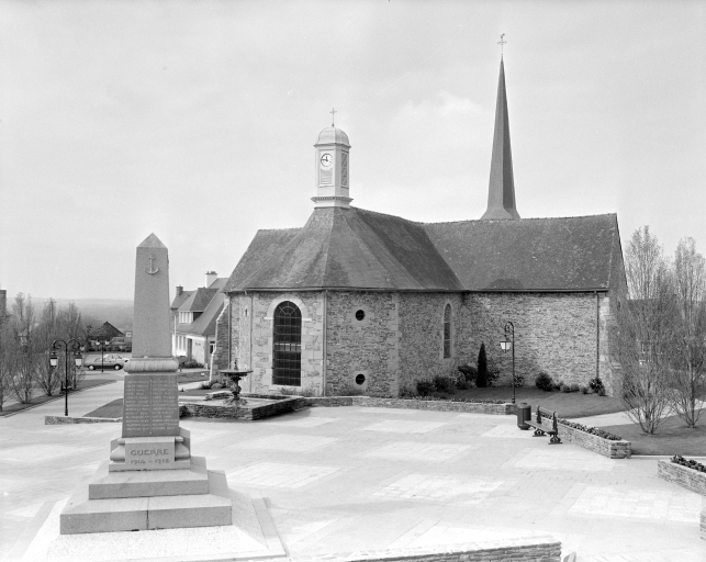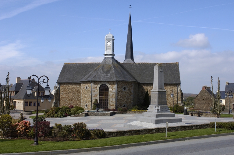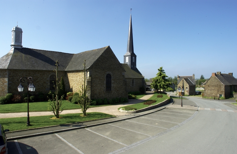 La nef et la façade ouest sont du 15e siècle, les baies ont été remaniées au 18e siècle. Au nord, la chapelle privée des seigneurs de La Bourbansais avait été reconstruite en 1717. Le transept et le choeur actuels sont édifiés en 1841 (daté par travaux historiques).L'architecte rennais Mellet réalise le campanile qui abrite l'horloge installée par le manceau Gourdin en 1860 (daté par source).