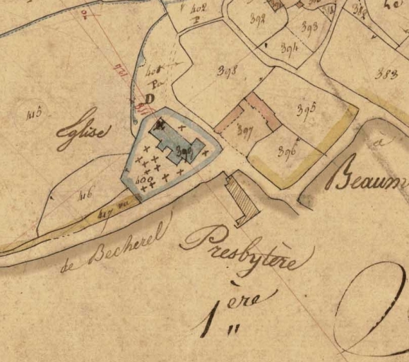 Plan cadastral parcellaire de la commune de Longaulnay, terminé sur le terrain le 20 octobre 1834, par M Declay, géomètre du cadastre (A.D. Ile-et-Vilaine : série P).