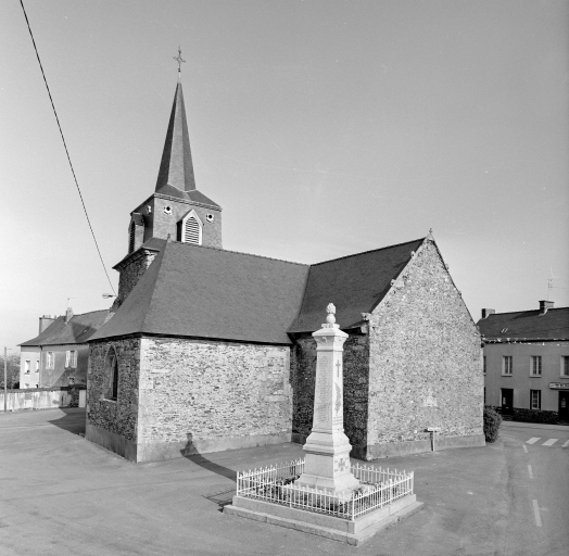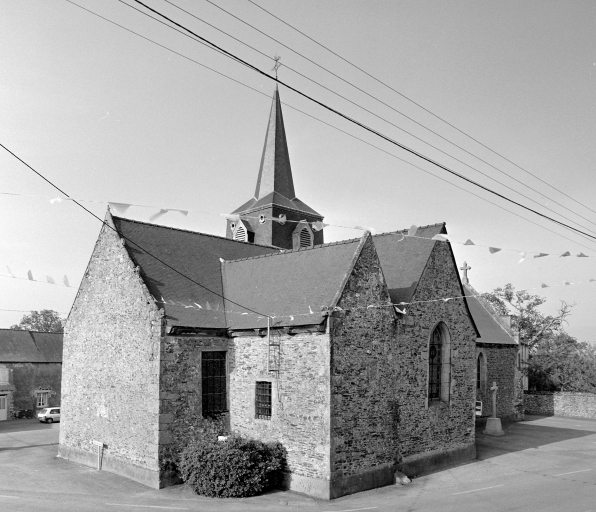 L'église à l'origine priorale dépendait de l'abbaye de Saint-Méen. Elle a été reconstruite au 16e siècle, la chapelle nord des seigneurs de Boishamon est datée 1557. La tour est construite en 1645 et sa flèche refaite en 1773. La chapelle sud du Rosaire est reconstruite en 1745. Au 19e siècle : démolition du clocher situé en haut de la nef, construction de l'élévation occidentale et déplacement de l'ancien portail dans le mur sud de la nef. Cadran solaire daté 1643. Au chevet, vestiges d'un sacraire réemployé dans la maçonnerie.