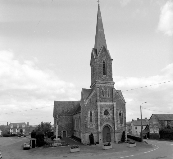 L'ancienne église était décrite en 1855 comme petite et vétuste. Elle possédait une chapelle privée des seigneurs de La Morandais. L'église actuelle a été construite entre 1859 et 1862 sur les plans de l'architecte Louis Leray par l'entrepreneur Joubrel. La tour est achevée en 1871 par Duperray entrepreneur. Construction de deux sacristies par Pierre Ruault en 1887.
