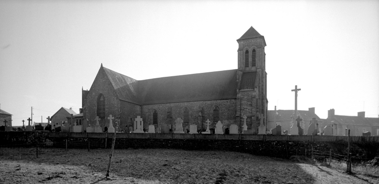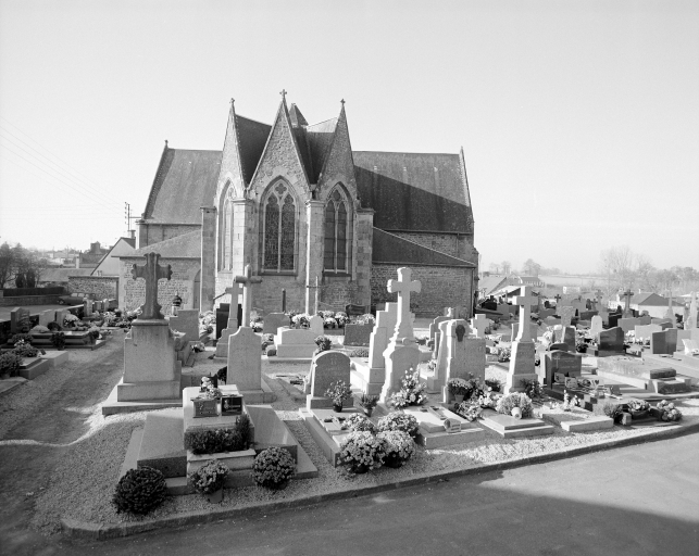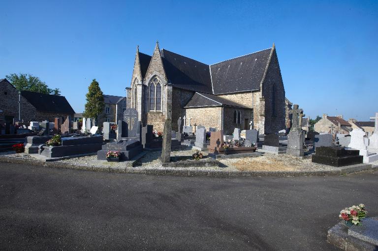 Église primitive constituée d'une nef de la limite du 14e siècle 15e siècle à chevet plat. L'église actuelle a été fortement remaniée au 19e siècle. Le chœur a été agrandi par une abside à pans coupés entre 1854 et 1856 par l'entrepreneur Jourdin, puis le transept, la nef et la tour ont été repris en 1886 suivant les plans d'Aristide Folie (dates et attributions par travaux historiques).