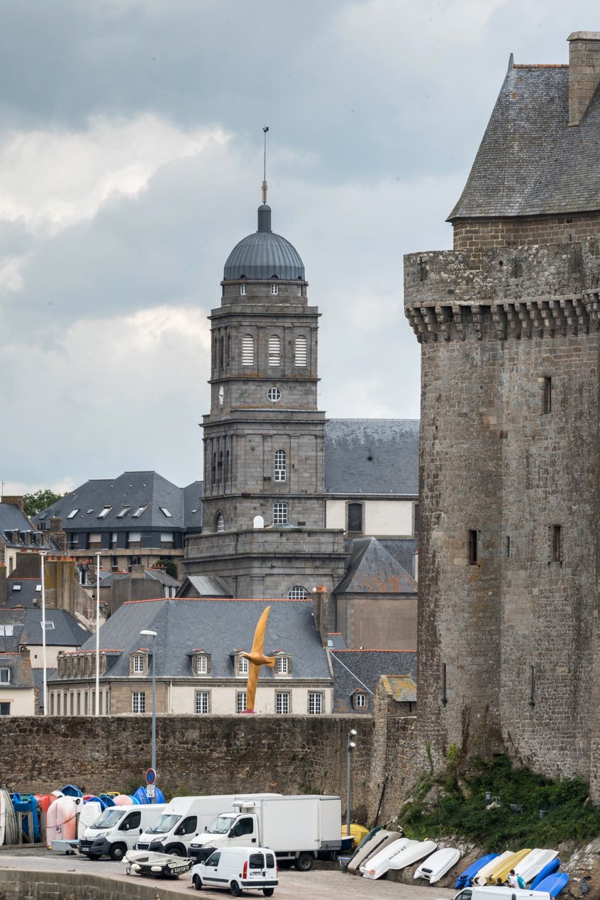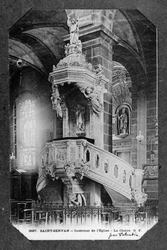 La première pierre de la nouvelle église fut posée en 1715 (daté par source), mais la construction d'une partie du gros-œuvre s'est surtout échelonnée entre 1732 et 1743 selon les plans dressés par les ingénieurs Amédée-François Frézier et Siméon Garangeau. La façade et une travée de la nef ont été édifiés en 1825 par l'architecte Julien Leclair, le clocher par les architectes Leclair et Hamon. La décoration murale date de la 2e moitié du 19e siècle, elle est due à Léon Plateau, artiste de Saint-Servan, pour le décor des voûtes et à Louis Duveau, artiste malouin, pour le décor des tympans des arcades de la nef.