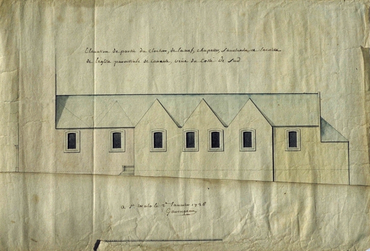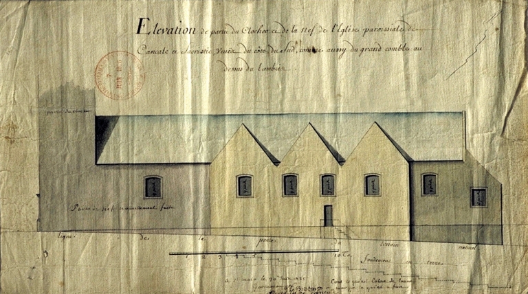 Entre 1836 et 1838, de nouveaux agrandissements sont conçus, notamment l'aménagement d'une façade aveugle avec son toit terrasse et l'agrandissement de la nef par deux bas-côtés, qui forment un double pignon sur chaque façade latérale. Siméon Garengeau intervient à Cancale en tant que directeur des fortifications de Haute-Bretagne. Il est chargé à l'époque de la conduite des ouvrages militaires mise au point par Vauban dès 1689 pour défendre les approches du port Malouin. Un bon nombre de ses plans ont aujourd'hui disparu, seuls subsistent ceux des fortifications.