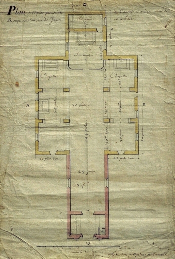 Dès 1725, émerge l’idée de rebâtir entièrement l’édifice. La couverture et les murs devenus trop dégradés pour être réparés, on décide de faire appel à l'ingénieur Siméon Garengeau (1647-1741) pour dresser les plans d’une nouvelle construction. Ce dernier propose d'adjoindre à la nef un triple transept avec un chœur plus petit à chevet plat. À l'origine, les bas-côtés ne couraient pas tout au long de la nef. En effet, sur le plan au sol dressé par Garengeau en juin 1725, on distingue la construction de 1714 -figurée en rouge- des nouveaux aménagements qu'il propose -figurée en jaune-. L'église de style néoclassique s'affiche par son clocher en façade, le portail d'entrée remanié par Siméon Garengeau, est constitué d'un arc surbaissé surmonté d'un fronton triangulaire que soutiennent quatre pilastres doriques. Au-dessus se dresse une tour carrée coiffée d'un clocher recouvert d'un toit à l'impériale sur lequel se situe un lanternon, caractéristique de cette période. Vers la fin du 18e siècle, Siméon Garengeau dresse en collaboration avec l'ingénieur Amédée Frézier, les plans de l'église Saint-Croix à Saint-Servan. Par ses lignes extérieures austères elle se rapproche de façon simplifié de la façade de l'église Saint-Méen. Le clocher coiffé d'un lanternon ou formant clocher-porche est caractéristique du 18e siècle.