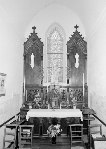 Chapelle de pélerinage bénite le 26 juillet 1877 (porte la date, baie du chevet) .