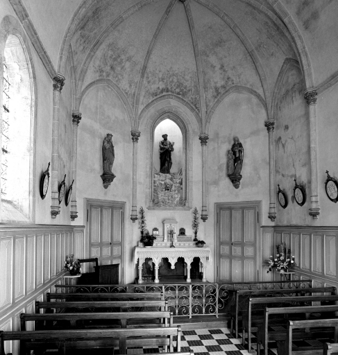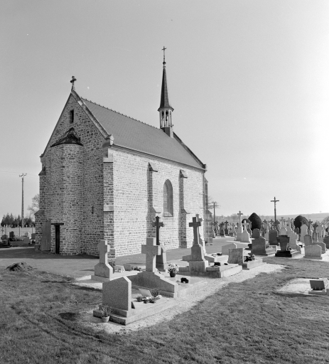 Chapelle construite en 1876 (porte la date sur le pignon) . Récemment restaurée.Verrières décoratives de Loeillet, peintre verrier à Vitré.