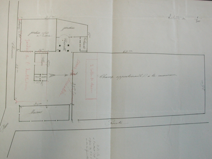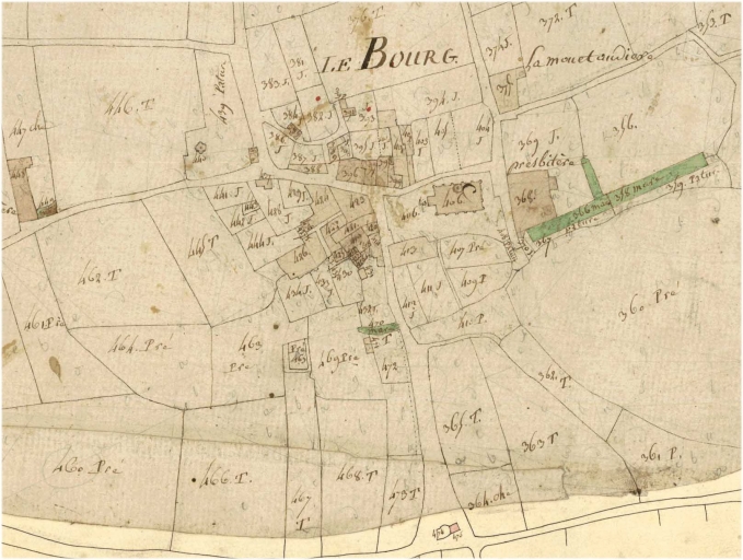 Plan géométrique parcellaire de la commune d'Etrelles, section B1 dite du Bourg, par Gazon géomètre, 1810, échelle 1/2500e (A. D. d'Ille-et-Vilaine : 3 P 5338).