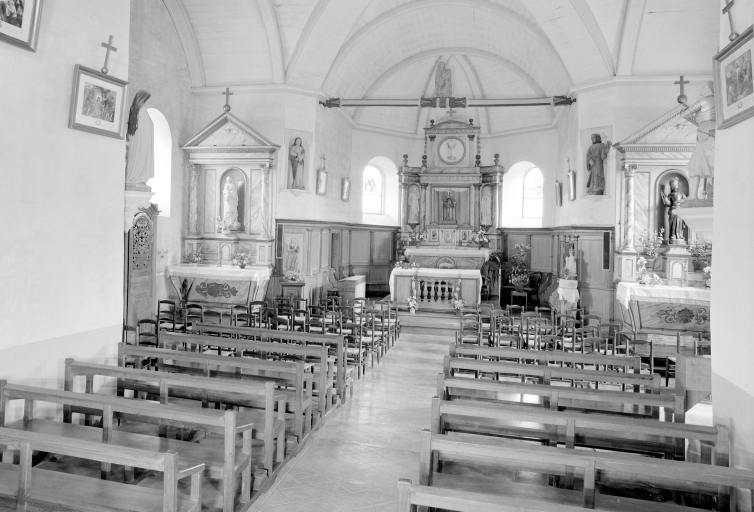 Plan en croix latine, lambris de couvrement, campanile en façade a remplacé une petite flèche de croisée, plan en croix latine, chevet à pans coupés, porche latéral.