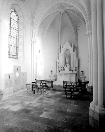 Chapelle élevée au 4e quart du 19e siècle à l'emplacement d'un ancien sanctuaire détruit en 1880. Verrières signées Lecomte et Colin, Rennes 1894.