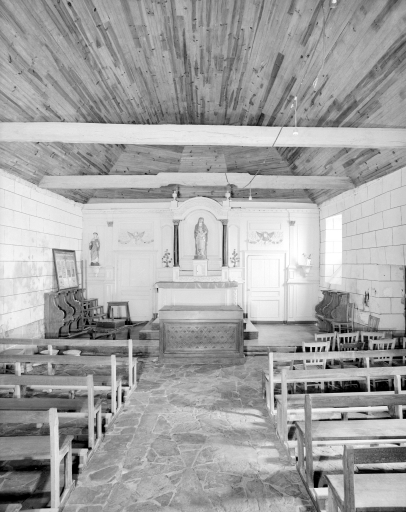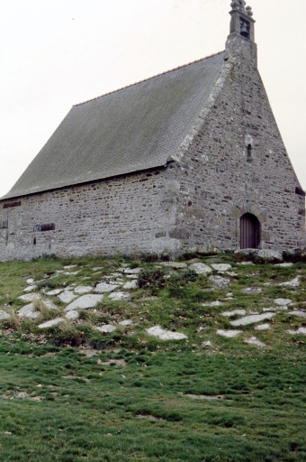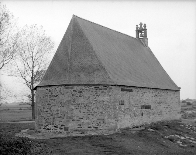 Sur un promontoire, en bordure d'océan. Plan allongé, lambris de couvrement, campanile en façade, chevet à pans coupés.