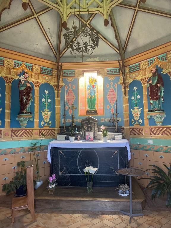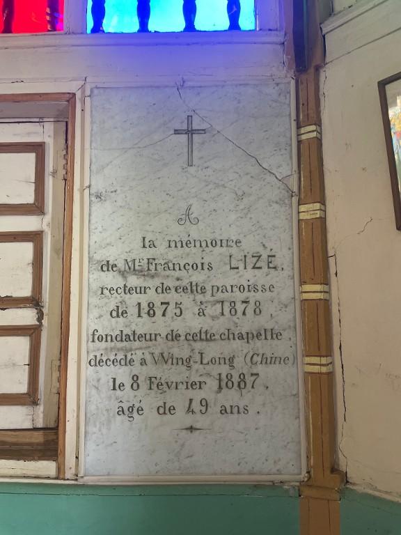 Cette chapelle en forme de pagode octogonale a été fondée par le missionnaire François Lize, rapatrié de Chine et recteur de la paroisse de 1875 à 1878 (dates portées sur épitaphe). Les peintures murales intérieures ont été renovées et reconstituées en 1990 1991.