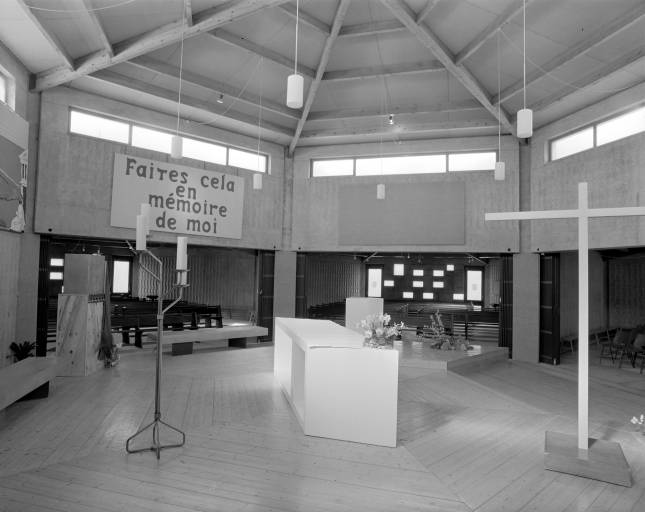 Chapelle Sainte-Madeleine de la 2e moitié du 20e siècle construite par le cabinet d'architecte Yves Perrin et Georges Martin. L'aménagement du choeur est réalisé par Yves Reignier (attributions par travaux historiques) .