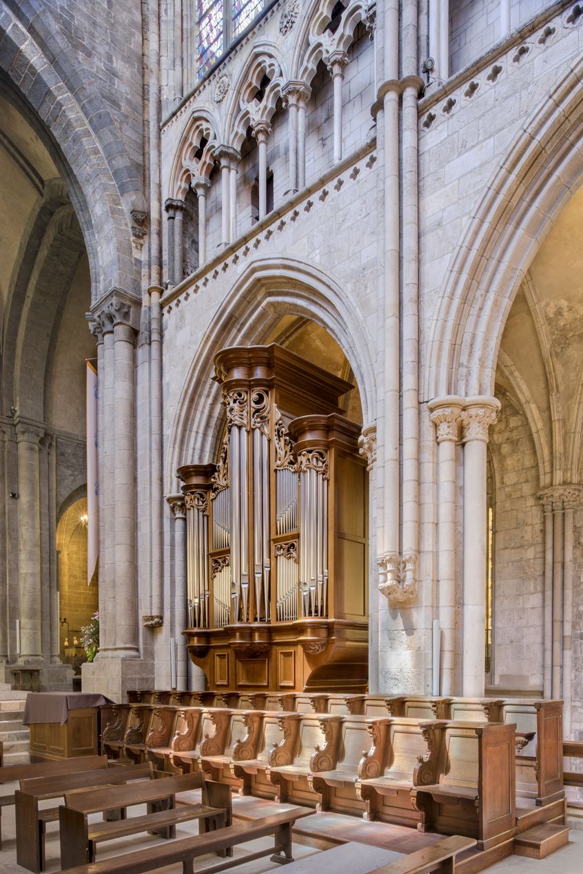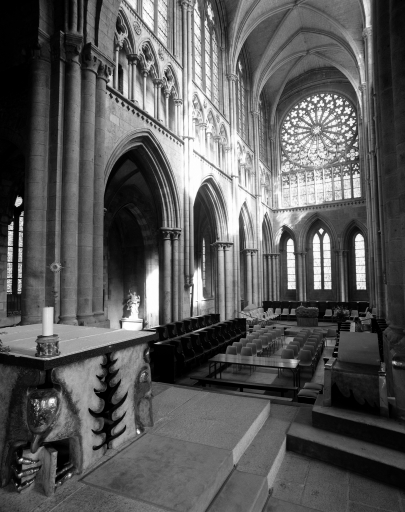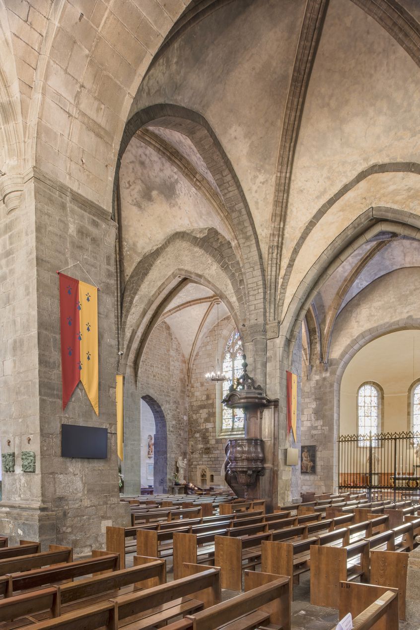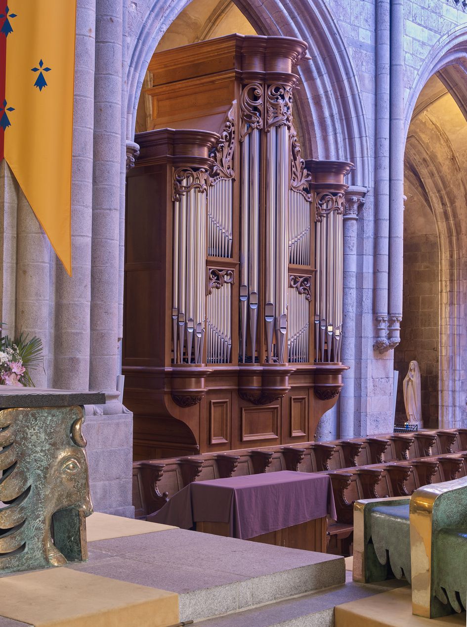 Les travaux de restaurations de l'édifice ont été confiés au lendemain de la guerre à l'architecte Raymond Cornon puis plus récemment à Pierre Prunet. Les vitraux des bas-côtés sont de Max Ingrand, ceux du choeur et du transept sont réalisés en 1971 par Jean Le Moal.