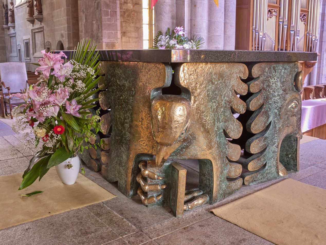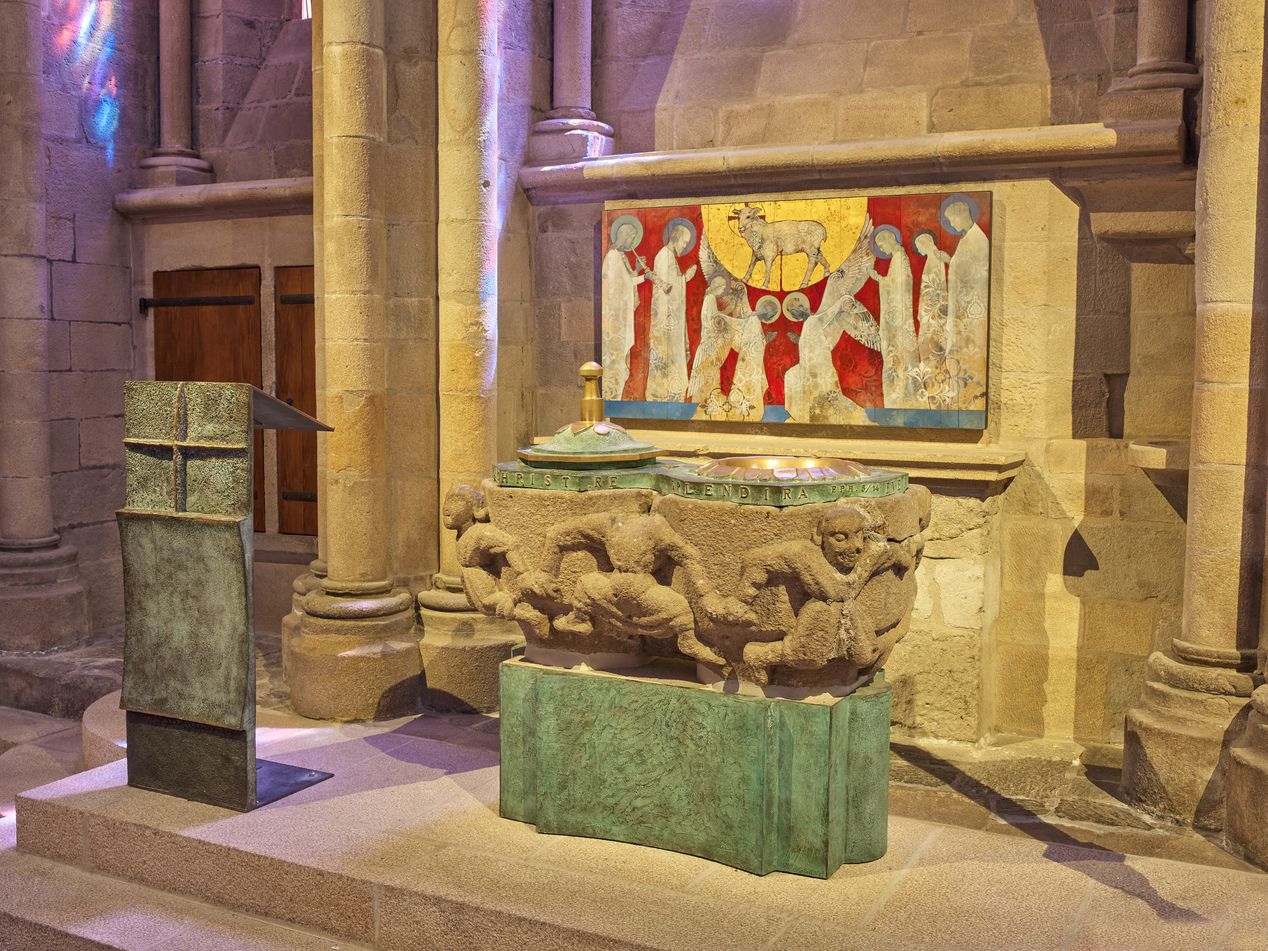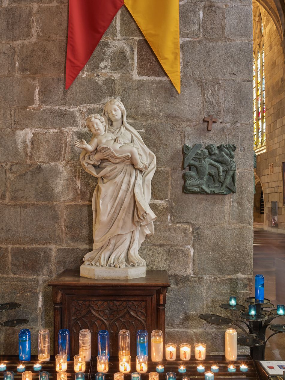 Les travaux de restaurations de l'édifice ont été confiés au lendemain de la guerre à l'architecte Raymond Cornon puis plus récemment à Pierre Prunet. Les vitraux des bas-côtés sont de Max Ingrand, ceux du choeur et du transept sont réalisés en 1971 par Jean Le Moal.