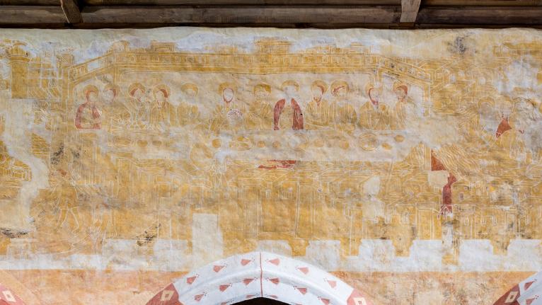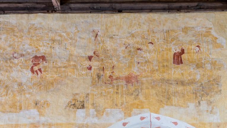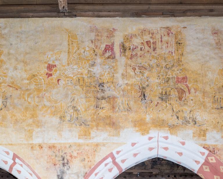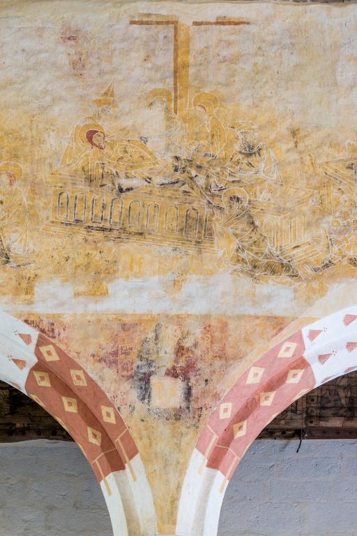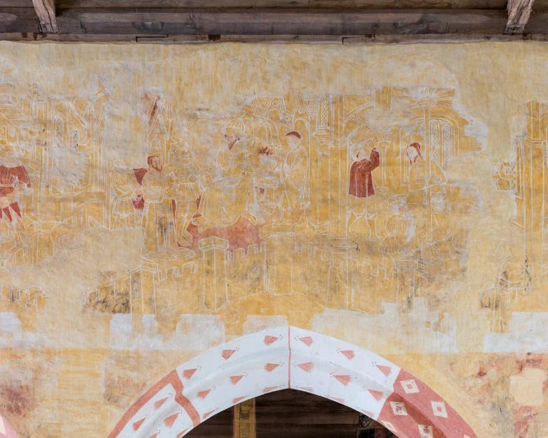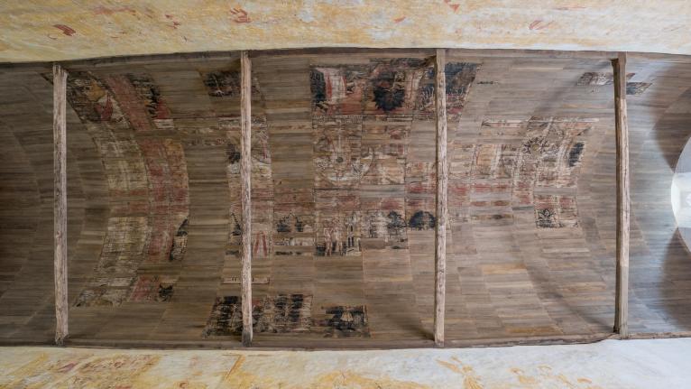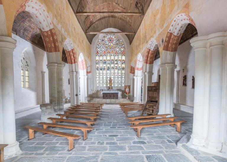 Une importante restauration effectuée entre 2012 et 2016 a permis de redécouvrir un décor héraldique appliqué sur les voussoirs des arcades ainsi qu'un exceptionnel programme de peintures sur les ùurs de la nef et le lambris de couvrement de sa charpente du tout début du XVe siècle illustrant des scènes de la Vie de la Vierge et de celle du Christ.
