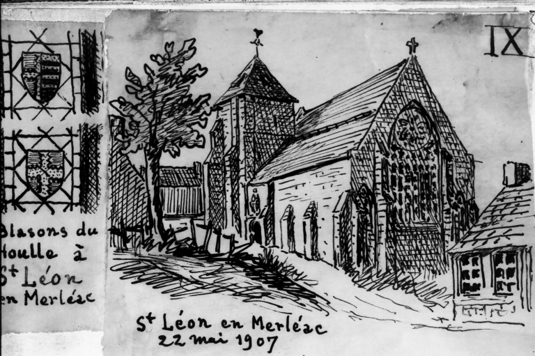 Cet édifice mal connu, d’aspect homogène mais de réalisation complexe, fut probablement érigé à partir du dernier tiers du XIVe siècle, mais aucune pièce d’archives n’en établit avec certitude la fondation. Il semble que plusieurs auteurs anciens aient confondu le lieu escarpé où se trouve bâtie la chapelle et le village de Saint-Léon, en contrebas de l’autre côté de la rivière, autrefois qualifié de bourg, qui était au Moyen Âge et jusqu’au XVIIIe siècle le siège d’une importante foire et possédait lui aussi une chapelle, disparue. Cette confusion a sans doute engendré la tradition attribuant la construction à Jean Validire, dit de Saint-Léon, personnage influent qui, prieur des Jacobins de Morlaix vers la fin du XIVe siècle, devint confesseur du duc Jean V, puis évêque de Saint-Pol-de-Léon de 1427 à 1432, et enfin évêque de Vannes à partir de 1443. En réalité, il est important de rappeler que la paroisse de Merléac se trouve située dans la seigneurie de Corlay, membre de la vicomté de Rohan. Le décor peint de macles d’or sur champ de gueules visible sur les voussures des arcades de la chapelle, ainsi que dans la partie supérieure du réseau de la maîtresse-vitre, dans les bordures des lancettes, le monogramme M couronné de Marguerite de Rohan, épouse du connétable Olivier de Clisson, associé à des fleurs de lys authentiques, dans la baie du collatéral nord la plus proche du chevet, permettent un rapprochement avec le couple de Jean Ier, vicomte de Rohan, et de son épouse Jeanne de Navarre, fille de Philippe III, comte d’Évreux et de Mortain, mariés en 1373. Ces armoiries, portant l’alliance Rohan et France-Navarre, étaient visibles au début du XVe siècle sur le manoir du Vaugaillard, ancienne seigneurie de haute justice de la paroisse. Vers 1860, l’édifice étant en très mauvais état, sa charpente et sa couverture sont entièrement refaites et le sommet des murs latéraux relevé, permettant l’installation d’un toit unique couvrant nef et collatéraux. Les vitraux, ainsi que le lambris peint de la nef et des collatéraux sont également déposés et restaurés. Une deuxième restauration a lieu vers 1900.