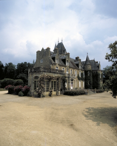 Château de plan complexe à plusieurs corps de bâtiments, implanté dans un vaste domaine forestier parcouru d'avenues et entouré d'un parc. Une orangerie est adossée à la façade sud du logis. Puits à superstructure en ferronnerie. Communs construits en pierre et brique.