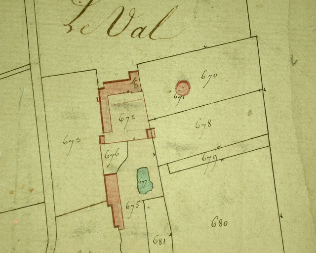 Mentionné dès le 15e siècle, le château du Val est reconstruit en 1571 à l'initiative d'Amaury Gouyon, baron de la Moussaye. Charles de Gouyon et sa femme Claude du Chastel y ont séjourné régulièrement et ont accueilli le prince protestant Henri de Condé en 1585 lors de son exil vers Jersey. Le château possédait alors un grand corps de logis flanqué de deux tourelles et une aile ouest conduisant à la chapelle. Seul ce dernier bâtiment a échappé à l'incendie provoqué par le repli des anglais en 1758. La chapelle, achevée vers 1582, a été restaurée au début du 20e siècle. Propriété du marquis du Hallay au 18e siècle, laissé à l'abandon depuis le milieu du 18e siècle, le château du Val devient en 1777 la propriété de Pierre de Châteaubriand. Celui-ci engage alors une campagne de reconstruction achevée vers 1780. Confisqué à la Révolution, dégradé par les casernements de troupes, le château est acheté en 1801 par François-Julien-Michel de la Morvonnais, puis transmis à Hippolyte de la Morvonnais qui le restaure dans la 1ère moitié du 19e siècle.