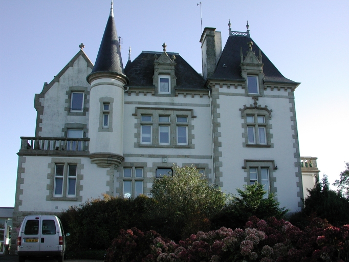 Cette maison de notable occupe un site de promontoire avec vue à l'est sur la Lieue-de-Grève. Elle est construite sur un plan complexe et comporte plusieurs éléments traduisant une nette influence du style néogothique (larmiers à retours, croisées, traverses, fleurons, crochets) et, dans une moindre mesure, du style classique (toit en pavillon, tourelle en encorbellement). Elle comprend un sous-sol, un rez-de-chaussée surélevé, un étage carré et un étage de comble et se compose de plusieurs corps de bâtiment dont deux corps principaux disposés en équerre avec tour carrée dans l'angle à l'arrière, sur lesquels sont greffés à l'avant trois corps de bâtiment de plan massé : un corps de bâtiment central orné d'une tourelle en encorbellement, un corps en rez-de-chaussée à toiture-terrasse à gauche, un corps coiffé d'un toit en pavillon à droite. Le site comprend également une partie agricole ancienne comprenant un logement à avancée déclassé et remanié prolongé par une dépendance de même hauteur à gauche.