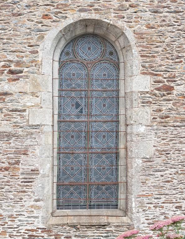 L’église est construite en moellons de schiste, à l’exception du collatéral sud de la nef en pierres de tailles de granite. Elle est couverte d’un toit en ardoises à longs pans, à croupe sur le chœur et des pignons découverts. Le plan en croix latine abrite une nef à quatre travées avec deux bas-côtés, traversée par un transept saillant et précédée d’un porche d’entrée. Le plan en croix latine et le chevet à cinq pans coupés se détache peu au sud, du fait de l’élargissement des collatéraux et de la construction de la sacristie à étage, en hors-œuvre, au sud du chœur. Le parti bas de la nef et des collatéraux contraste avec la hauteur de la tour-porche à l’ouest. Une opposition accentuée par sa mise en œuvre en pierre de taille de calcaire de la flèche, alors que les autres parties de l’église sont construite en moellons. Le clocher-porche enduit à la chaux présente un escalier en hors-œuvre et se distingue par son couronnement en dôme, ses baies cintrées à fronton et pilastres, ses lanternons placés aux quatre angles de la plate-forme. L’édifice est percé d’ouvertures en plein-cintre avec un encadrement en granite, à l’exception de celles de la sacristie avec un linteau segmentaire qui sont fermée par une grille en métal. La sacriste se distingue aussi par sa corniche avec des modillons et son angle à pan coupé.