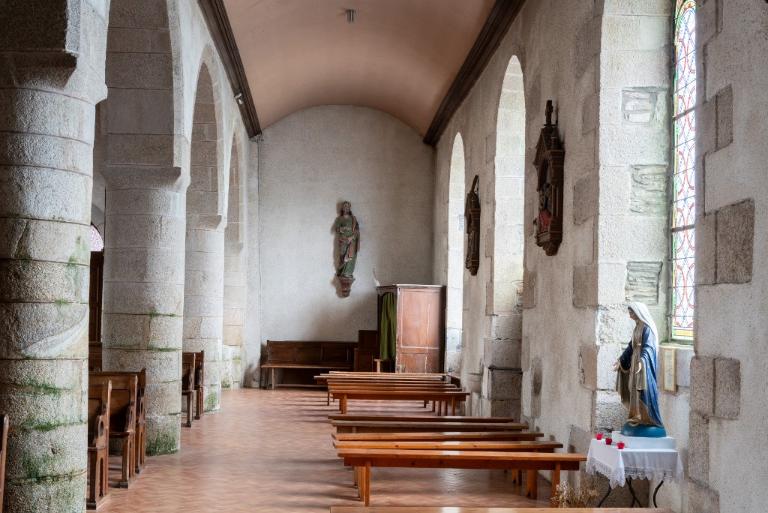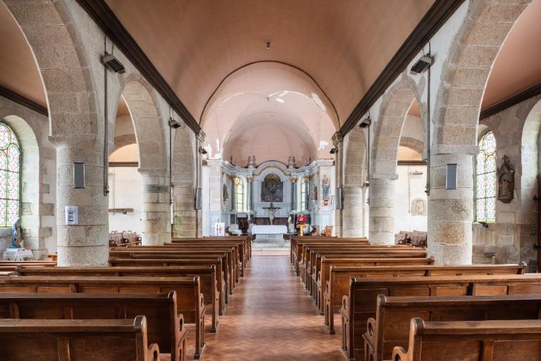 En 1765, le général exprime la volonté de construire le collatéral sud de l’église et d’augmenter le nombre d’ouvertures. Les travaux aboutissent en 1770 comme en témoignent la date gravée au-dessus de la porte du collatéral et le témoin de banni (document publié pour faire appel à des artisans et leur proposer le marché). Un projet de réaménagement de la nef est mentionné dès 1767. Le général prend d'abord avis par un procès-verbal auprès de Monsieur Saint-Julien, « ingénieur du Roy à Pontivy », afin de prévoir la manière de conduire le chantier. Le marché est établi le 22 avril 1770 avec Jean Gausson, maitre maçon du village de Quidy à Saint-Caradec, sur les plans de Jean Perroud, ingénieur des ponts et chaussées à Saint-Brieuc. En 1776, le général exprime de nouveau la volonté d'agrandir le bâtiment afin de contenir la population qui a considérablement augmenté. L’église est devenue trop petite notamment lors des jours de fête. Il est décidé de réédifier une collatéral au nord de la nef. Le projet se double d’une dimension d’embellissement afin de permettre au collatéral et à la chapelle du Monstoir de recevoir des décorations. En effet, les délibérants jugent que ces deux espaces défigurent le corps de l’église, ils sont donc élargis parallèlement au côté sud. Ces aménagements élargissent le corps de l’église au nord, sur un terrain qui appartient au duc de Rohan, mais entraine aussi une modification de la chapelle du Montoir, appartenant à la famille De Cornulier. Les travaux nécessitent donc au préalable leurs accords et la nomination de deux commissaires (le sieur Duparc, sieur de la Noe et le sieur Moisan, marchands de toiles) afin d’assurer la bonne conduite du chantier.