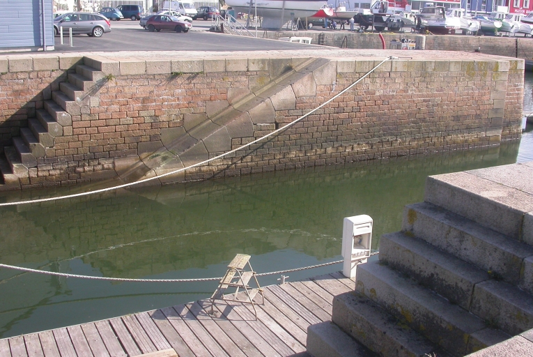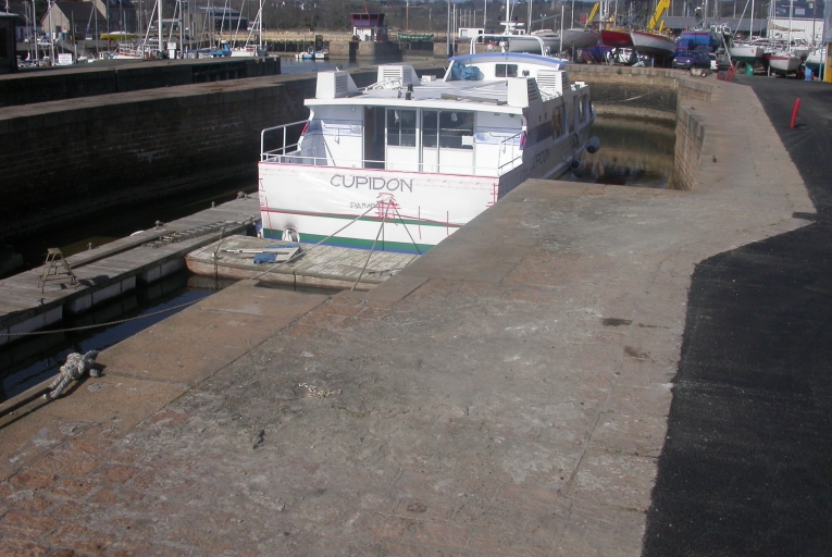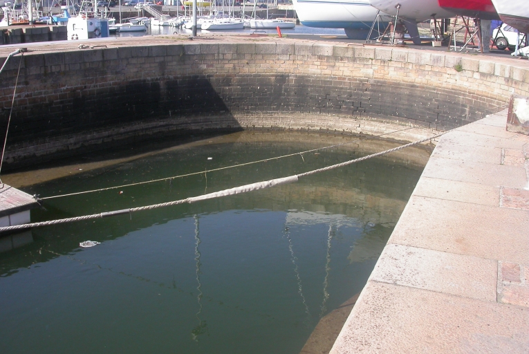 Construit en pierre de taille de granite, ce bassin de radoub a une forme allongée, hémisphérique à son extrémité. De chaque côté un escalier droit permet de descendre aux bateaux qui y accostent. Un ponton en bois longe la paroi est.