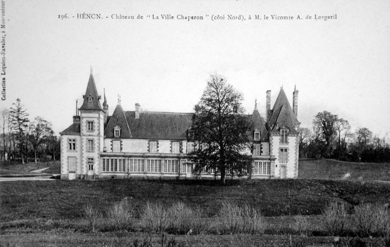 196.- HÉNON.- Château de « La Ville Chaperon » (côté Nord), à M. le Vicomte A. de Lorgeril. Collection Lequien-Ravalec, à Moncontour (A.D. 35 ; 6 Fi Hénon 18).