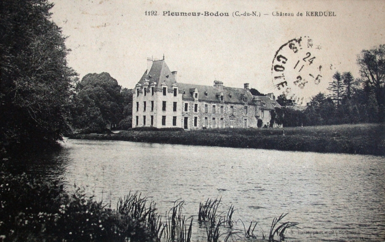 Le château de Kerduel, situé à Pleumeur-Bodou, remonte au 13e siècle et appartient à la famille de Kerduel. Dès sa construction, il devient un domaine fortifié. La demeure seigneuriale est un manoir protégé par un haut mur et des douves, avec une petite porte cochère qui permet l’accès.