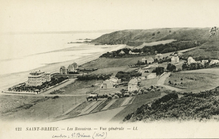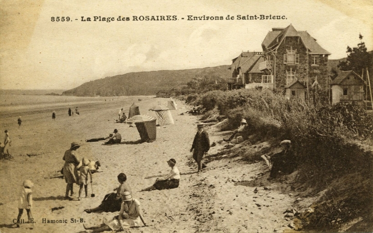 Au début du 20ème siècle, l'industriel Rosengart a créé avec son ami Paul Marteroy la station balnéaire des Rosaires. Il a fait construire la villa 'Ker Avel' (actuelle école de voile des Rosaires) et l'Hôtel Rosaria (actuellement restaurant 'La Balnéa'). Le chemin de grande communication conduisant de Saint-Laurent aux Rosaires a été réalisé et classé en 1912. Le front de mer des Rosaires s'est urbanisé progressivement au cours du 20ème siècle. On peut remarquer un bâti littoral d'inspiration régionaliste (architecture balnéaire), datant de la 1ère moitié du 20ème siècle, le long des boulevards qui bordent la digue-promenade. La 1ère digue de 280 mètres de longueur a été construite en 1937. Elle a été remaniée et rallongée plusieurs fois au cours du 20ème siècle.
