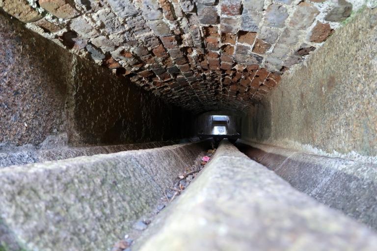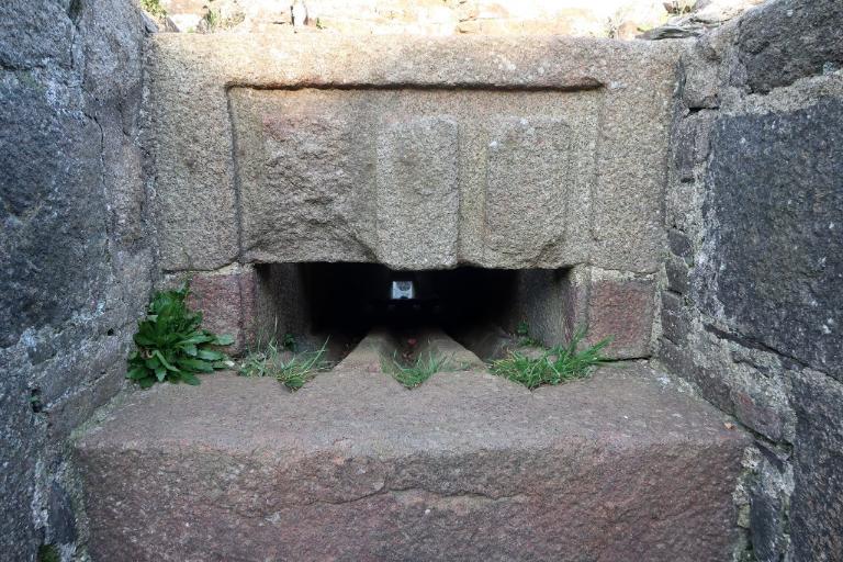 La goulotte de réception en granite des boulets mesure 1,3 m de longueur.