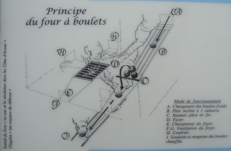 Construit en 1794 pendant les guerres de la Révolution, il permettait de chauffer les projectiles pour "tirer à boulets rouges" sur les navires ennemis avec un effet incendiaire. Ce type de four utilisait la réverbération de la chaleur du foyer sur la voûte en brique pour chauffer les boulets. Son combustible était du bois.
