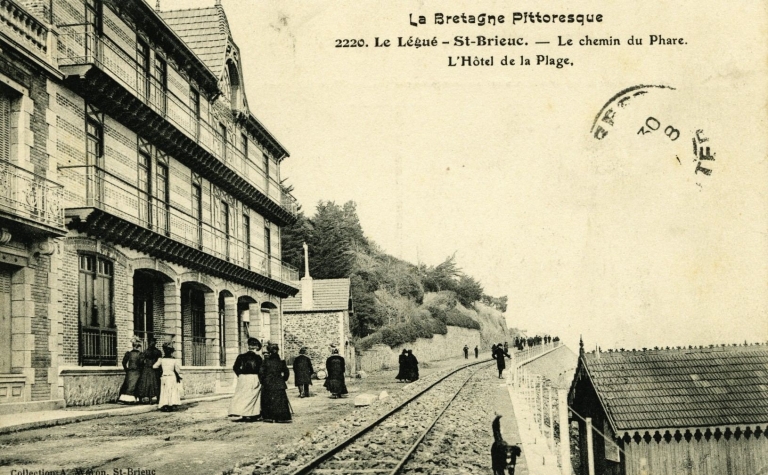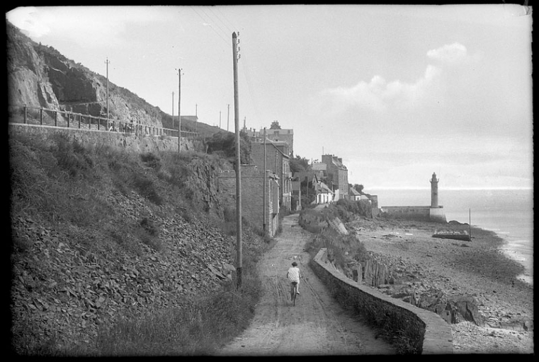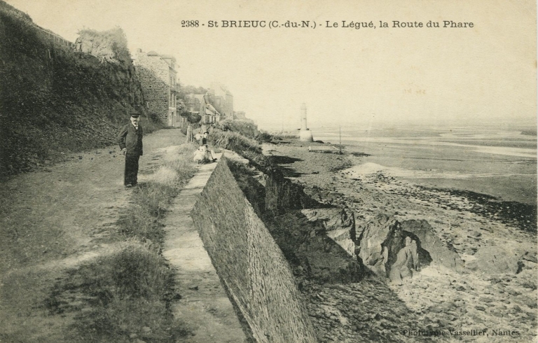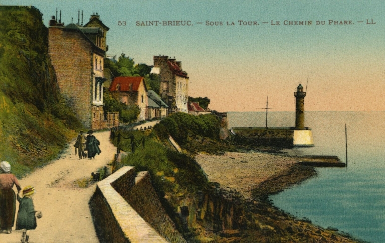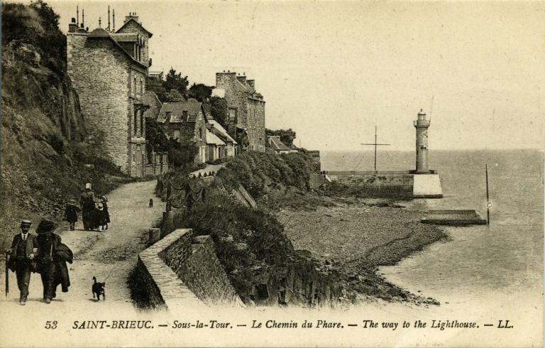 Le 'chemin du Phare' longeait la voie ferrée et passait en haut du sentier à l'angle de la propriété Guinard. Le chemin rejoint toujours le phare et offre une belle promenade et un joli point de vue sur l'embouchure du Légué et la baie de St-Brieuc. Il est bordé de maisons, dont certaines inspirées par l'architecture balnéaire, en vogue, au début du 20ème siècle. Cependant, ces maisons adossées à la falaise, sont exposées à la circulation des eaux pluviales qui suintent de la falaise.