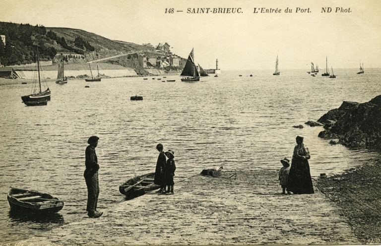Le projet primitif de bassin à flot en 1844 comprenait la construction d'un barrage en travers du Gouët, au bas du port d'échouage, transformé par ce moyen en bassin à flot et mis en communication avec le bassin actuel au moyen d'un pertuis sans porte.