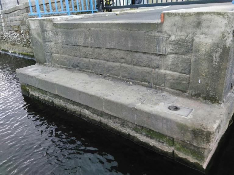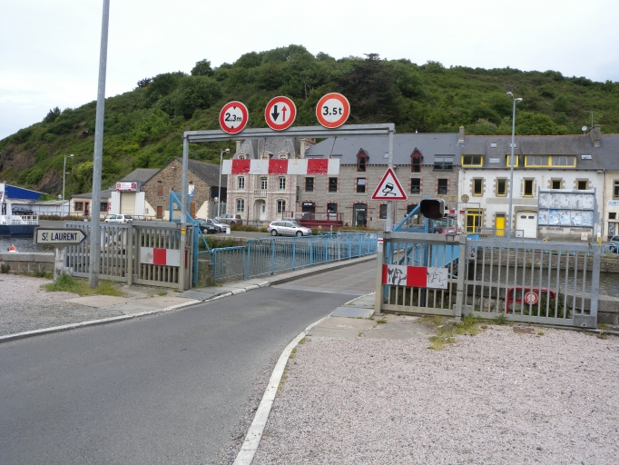 Pont mobile en acier reliant les deux rives du Gouët. Pont tournant sur une pile centrale (3.94 m de diamètre en partie basse et 3.10 m en partie haute), maçonnée sur un massif de diamètre de 5 mètres et de 2 mètres de hauteur. Couronne en pierre de taille (35 cm d'épaisseur et 3.30 m de diamètre) reçoit le mécanisme de rotation (pivot central, galets, crémaillère courbe) ; motorisation hydraulique.