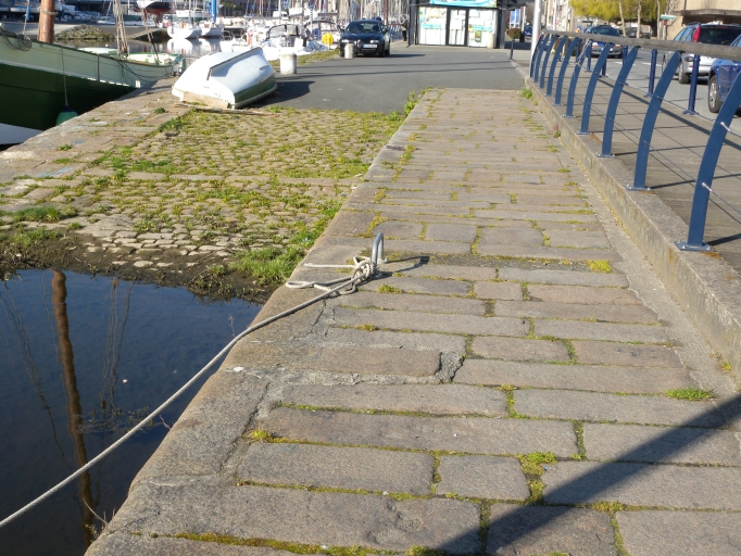 L'ensemble des quais de la rive gauche est réalisé avec une maçonnerie en pierre de taille (granite) et mesure 960 mètres. On peut encore remarquer un type de 'mobilier' portuaire, datant du 1760, au niveau du quai d'Aiguillon : un banc en pierre de taille, de forme semi-circulaire.