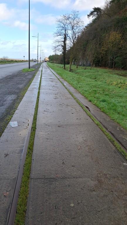 -Rive gauche : aucune trace de l'ancienne voie ferrée ; ancien tracé devenu la rue de la mer (Plérin). (Erwana L'Haridon, 2026)