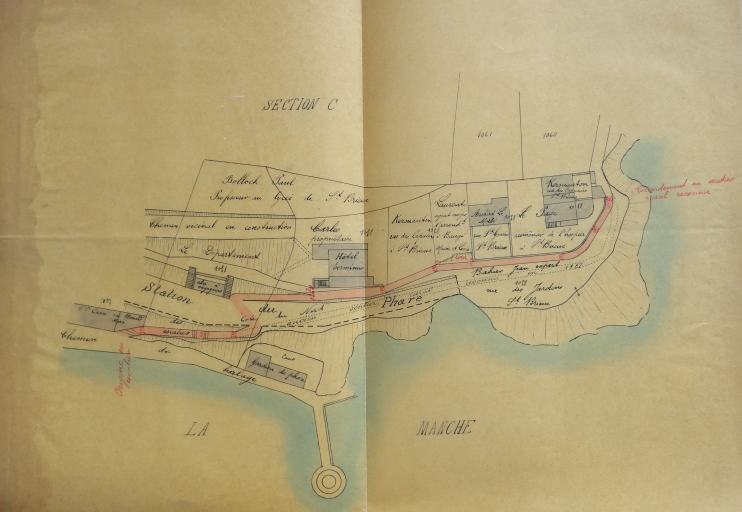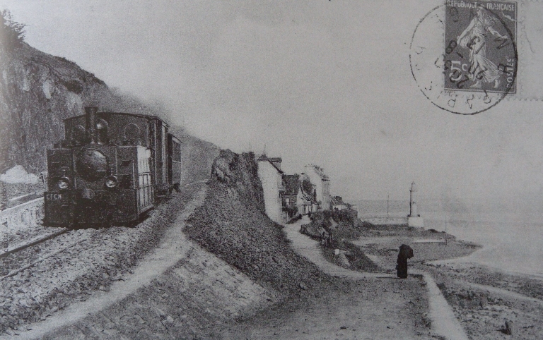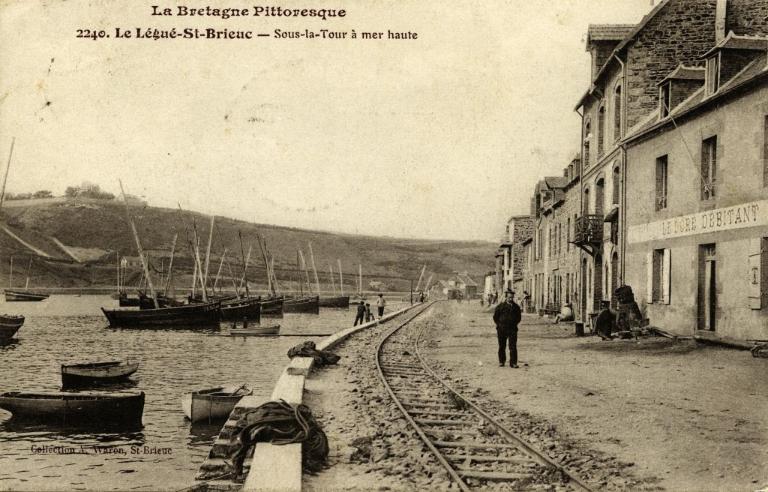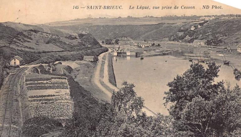 La ligne Saint-Brieuc-Le Phare de la compagnie des Chemins de fer des Côtes-du-Nord passe sur la rive gauche, en passant par le pont de Souzain (1903), et a pour terminus le phare de l'Aigle (Plérin). Empruntant une partie du tronçon Saint-Brieuc-Plouha, elle permet d'amener les briochins aux plages de la baie de Saint-Brieuc. De façon secondaire elle participe à l'activité portuaire pour le transport des marchandises vers la gare de Saint-Brieuc depuis Le Légué. Elle a été en activité du 1er mars 1906 au 31 décembre 1948. (Erwana L'Haridon, opération thématique des ports de Bretagne, 2026)
