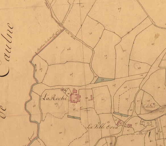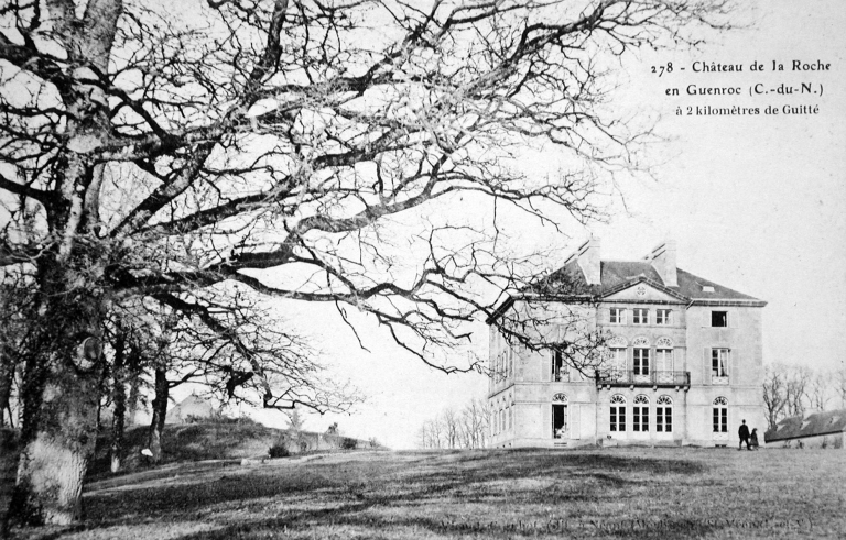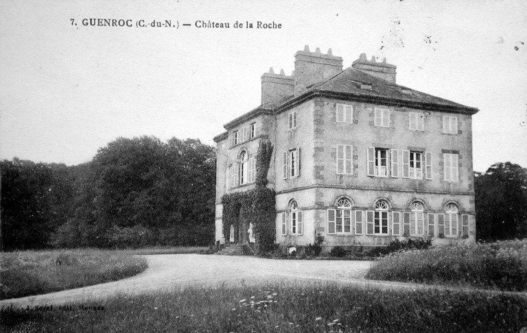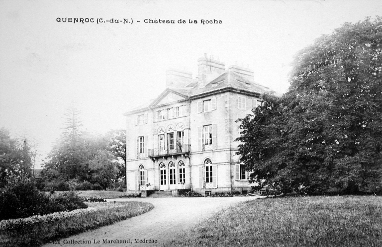 L’ancien manoir est représenté en 1833 immédiatement au sud de l’actuel château. Bien qu’il s’agisse d’un site de bas fond le toponyme de la Roche est probablement dû au voisinage à l’est d’un site dominant appelé le Rocher. Le cadastre ancien figure également à cet endroit trois pièces d’eau servant sans doute de viviers, l’un pour l’ancienne métairie de la Ville Oria, l’autre à l’extrémité sud du jardin du manoir de la Roche lui-même et le troisième en bordure de la charmille actuelle. L’ancien manoir était composé de trois bâtiments disposés en U autour d’une cour fermée et comprenait à l’angle nord-ouest une tour ronde servant de colombier.Le château actuel de plan carré est attribuable à l’architecte Louis Richelot qui construit à cette période plusieurs châteaux aux environs de Rennes. Les deux façades ordonnancées sont toutefois différenciées, la façade nord correspondant à l’entrée présente au premier étage de son avant-corps une grande serlienne qui contribue à l’esthétique de la façade et sert d’éclairage à la cage d’escalier. La façade sud est marquée par un faux avant-corps qui est percé au rez-de-chaussée et au premier étage par un triplet de portes fenêtres en plein-cintre. Le large perron du rez-de-chaussée de même que le balcon du premier étage témoigne d’une volonté hédoniste de profiter du parc paysager.