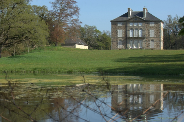 Château de style néoclassique, de plan massé rectangulaire, double en profondeur. Elévation ordonnancée à cinq travées. Les façades sont marquées par un avant-corps central et un perron. La façade sur jardin se distingue par un triplet de baies en plein- cintre surmontées d'un fronton triangulaire. La toiture est à croupe. Le corps de logis a perdu ses enduits d'origine. La chapelle isolée en bordure de l'étang, de style néogothique, porte la date de 1889. Les communs encadrent la cour et sont constitués de deux ailes parallèles détachées du logis.