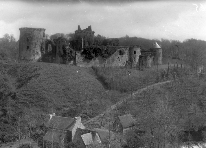 Située à l'extrémité de l'ancienne paroisse de Tonquédec, devenue commune, la place-forte contrôle l´axe de communication que pouvait représenter la vallée du Léguer, au coeur du Trégor. Elle est implantée sur un promontoire entre le fleuve et un petit affluent dont les eaux retenues par une chaussée forment un étang, au sud de la place. A l´extrémité de ce relief, sous les broussailles, on a identifié une petite butte retaillée en forme de motte, vestige probable du château primitif ensuite remplacé par le château de pierre.